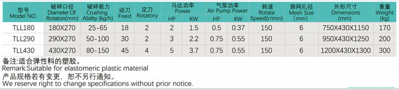 ● 低速回转,锐角动刀的设计有助于粉碎机运作更平稳、顺畅;