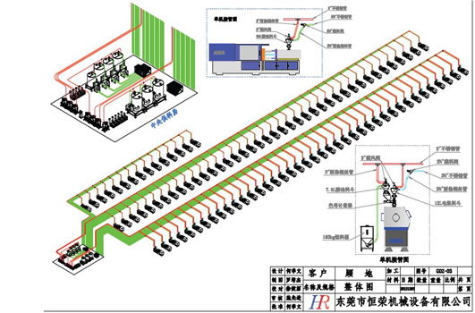 集中供料系统采用一台机一根管,密封式回路设计方式,保证整个系统运行稳定,绝无塑胶回潮、堵料现象发生。它配合干燥机(除湿机)系统使用,可使干燥空气对原料进行再次干燥,防止干燥后的塑胶回潮,同时在每个输送循环后对输送管进行清理,确保管道内没有残料。在避免原料回潮的同时也保证加入注塑机中原料一致性,在真空负压同进作用下,原料中原有的粉尘经过过滤器(集尘器)系统滤出,有利提高产品质量。